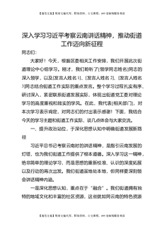 深入学习总书记考察云南讲话精神,推动街道工作迈向新征程.docx