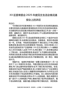 XX区委常委会2025年度民主生活会情况通报会上的讲话.docx