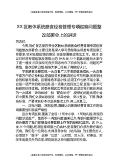 XX区教体系统膳食经费管理专项巡察问题整改部署会上的讲话.docx
