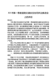 XX市第一季度道路交通安全协同共治推进会上的讲话.docx
