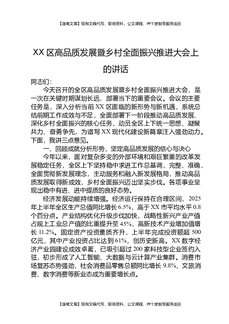 XX区高品质发展暨乡村全面振兴推进大会上的讲话.docx