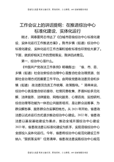 工作会议上的讲话提纲:在推进综治中心标准化建设、实体化运行.docx