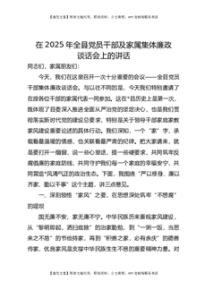 在2025年全县党员干部及家属集体廉政谈话会上的讲话.docx