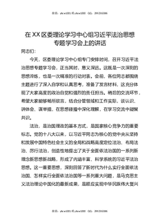 在XX区委理论学习中心组总书记法治思想专题学习会上的讲话.docx