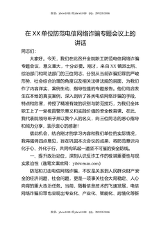 在XX单位防范电信网络诈骗专题会议上的讲话.docx