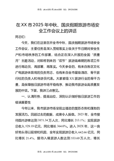 在XX市2025年中秋、国庆假期旅游市场安全工作会议上的讲话.docx