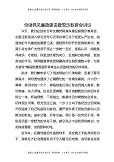 全镇党风廉政建设暨警示教育会讲话.docx