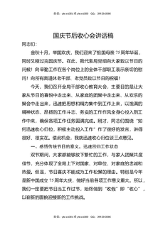 国庆节后收心会的讲话.docx