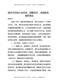 国庆节后收心会讲话:调整状态、全面推进、狠抓落实.docx
