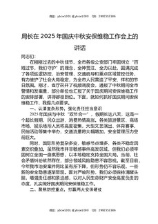 局长在2025年国庆中秋安保维稳工作会上的讲话.docx