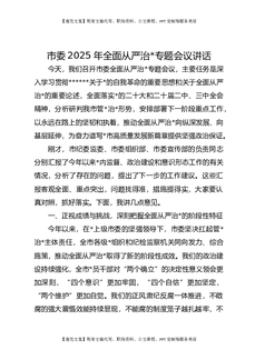 市委2025年全面从严治党专题会议讲话.docx