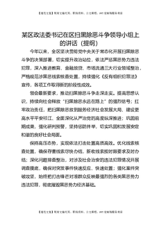 某区政法委书记在区扫黑除恶斗争领导小组上的讲话(提纲).docx