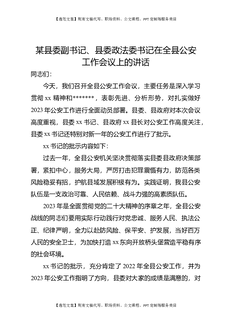 某县委副书记、县委政法委书记在全县公安工作会议上的讲话.docx