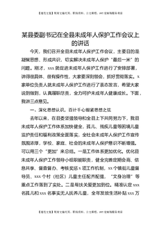 某县委副书记在全县未成年人保护工作会议上的讲话.docx