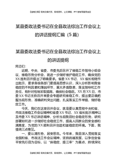 某县委政法委书记在全县政法综治工作会议上的讲话提纲汇编(5篇).docx