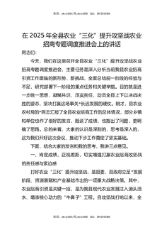 在2025年全县农业“三化”提升攻坚战农业招商专题调度推进会上的讲话.docx