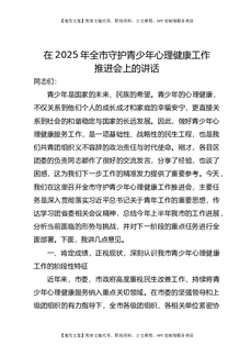 在2025年全市守护青少年心理健康工作推进会上的讲话.docx