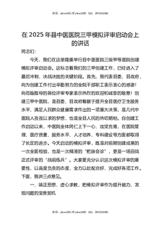 在2025年县中医医院三甲模拟评审启动会上的讲话.docx