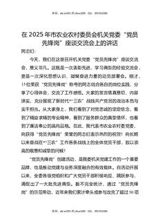 在2025年市农业农村委员会机关党委“党员先锋岗”座谈交流会上的讲话.docx