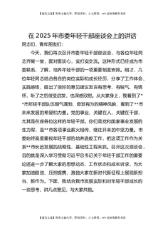 市级部门机关党委书记与年轻干部交流座谈时的讲话.docx