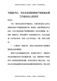 市委副书记市长在区调研房地产高质量发展工作座谈会上的讲话.docx