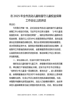 在2025年全市流动儿童和留守儿童权益保障工作会议上的讲话.docx