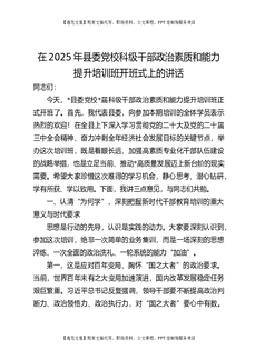 在2025年县委党校科级干部政治素质和能力提升培训班开班式上的讲话.docx