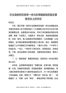 在全县教研咨宣育一体化改革赋能高质量发展推进会上的讲话.docx