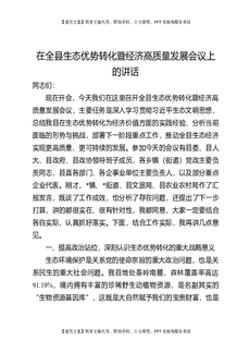 在全县生态优势转化暨经济高质量发展会议上的讲话.docx