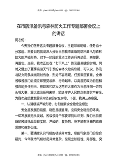 在市防汛备汛与森林防火工作专题部署会议上的讲话.docx