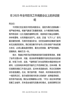 在2025年全市防汛工作调度会议上的讲话提纲.docx