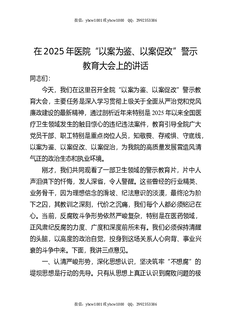 在2025年医院“以案为鉴、以案促改”警示教育大会上的讲话.docx