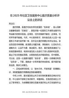 在2025年社区卫生服务中心医疗质量分析评议会上的讲话.docx