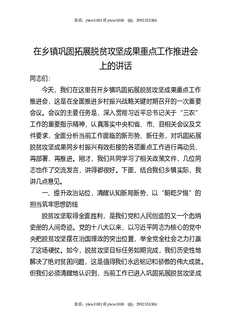 在乡镇巩固拓展脱贫攻坚成果重点工作推进会上的讲话.docx