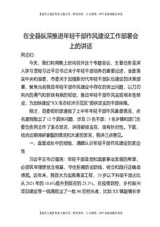 在全县纵深推进年轻干部作风建设工作部署会上的讲话.docx