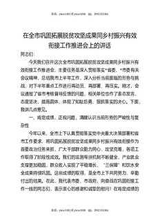 在全市巩固拓展脱贫攻坚成果同乡村振兴有效衔接工作推进会上的讲话.docx