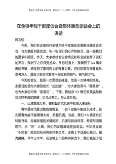 在全镇年轻干部座谈会暨集体廉政谈话会上的讲话.docx