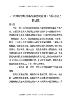 在市保险领域民事检察协同监督工作推进会上的讲话.docx