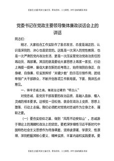 党委书记在党政主要领导集体廉政谈话会上的讲话.docx