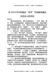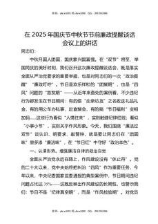 在2025年国庆节中秋节节前廉政提醒谈话会议上的讲话.docx
