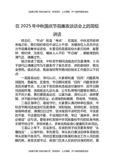 在2025年中秋国庆节前廉政谈话会上的简短讲话.docx