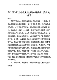 在2025年全市作风建设群众评估座谈会上的讲话.docx