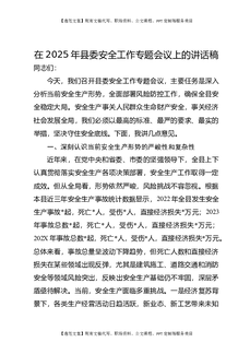 在2025年县委安全工作专题会议上的讲话稿.docx