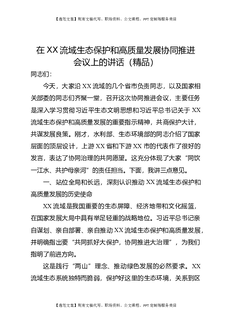 在XX流域生态保护和高质量发展协同推进会议上的讲话(精品).docx