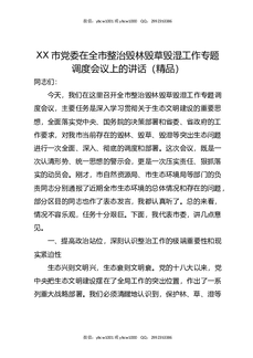 XX市党委在全市整治毁林毁草毁湿工作专题调度会议上的讲话(精品).docx