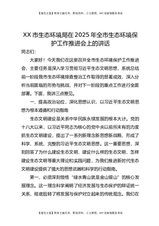 XX市生态环境局在2025年全市生态环境保护工作推进会上的讲话.docx