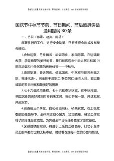 国庆节中秋节节前、节日期间、节后致辞讲话通用提纲30条.docx