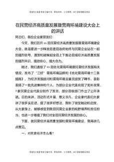 民营经济高质量发展暨营商环境建设大会上的讲话.docx