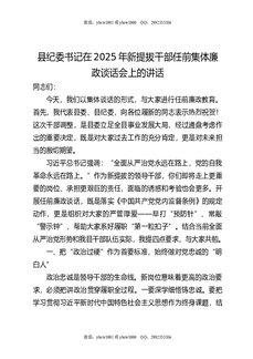 县纪委书记在2025年新提拔干部任前集体廉政谈话会上的讲话.docx