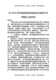在2025年市场监管系统食品安全监管工作专题会上的讲话.docx